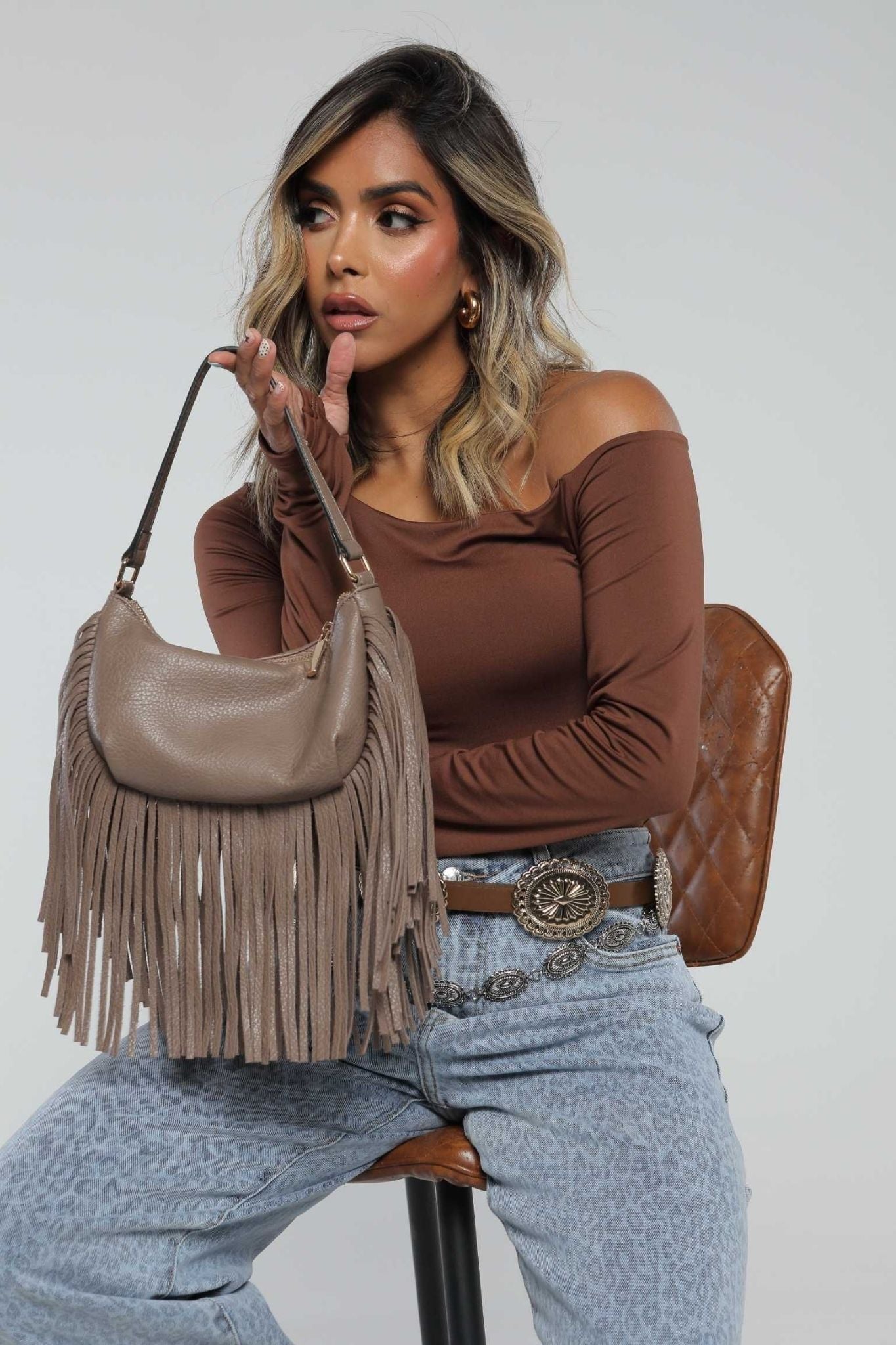 Bolso café con flecos